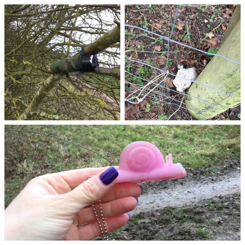 The caches came fairly thick and fast and I found this very cute, pink, snail shaped travel bug!