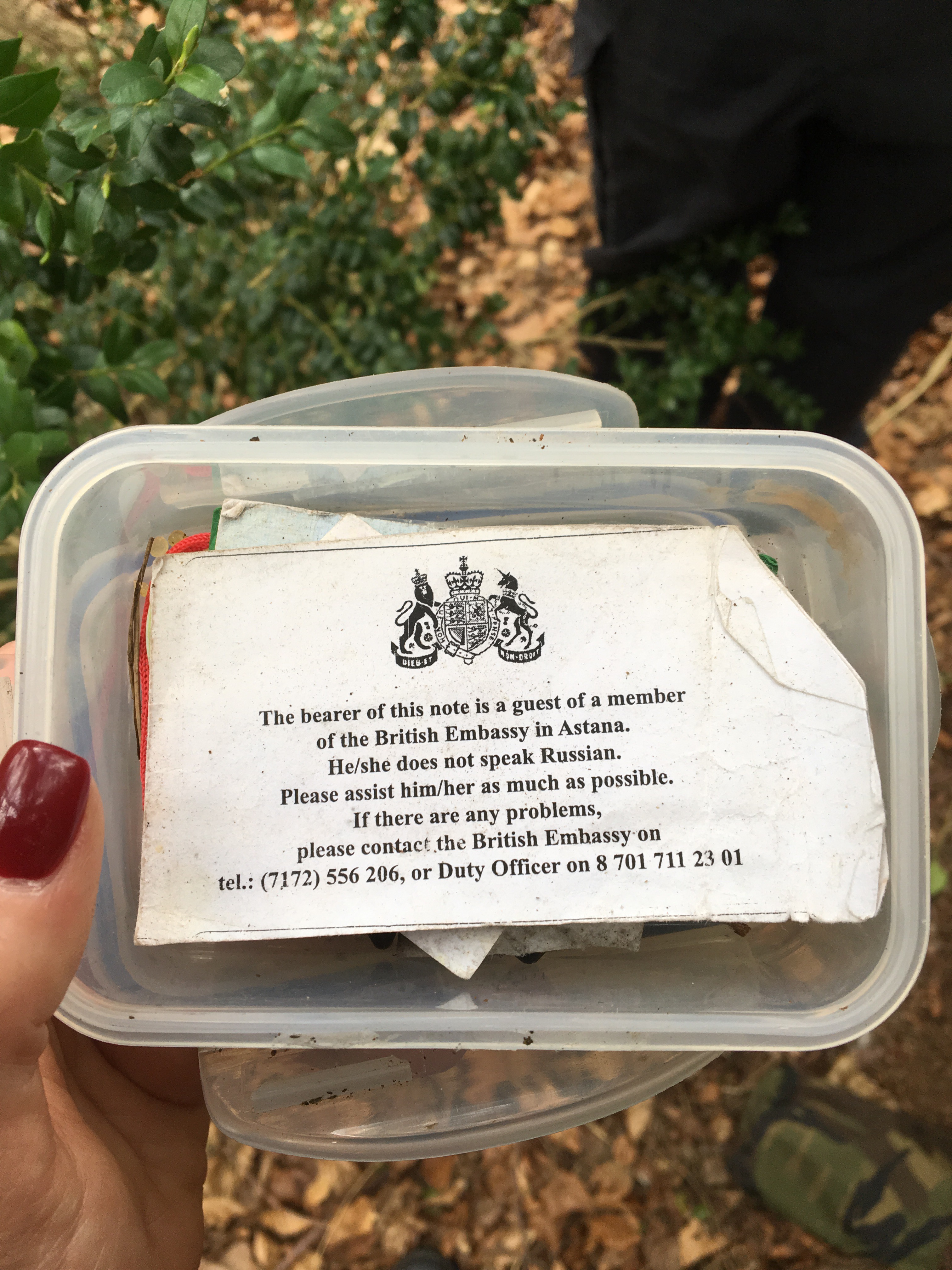 In one cache I then came across this rather unusual card – one side was written in English and in the other side Russian. I had to google Astana (which is apparently in Kazakhstan in case you were wondering).