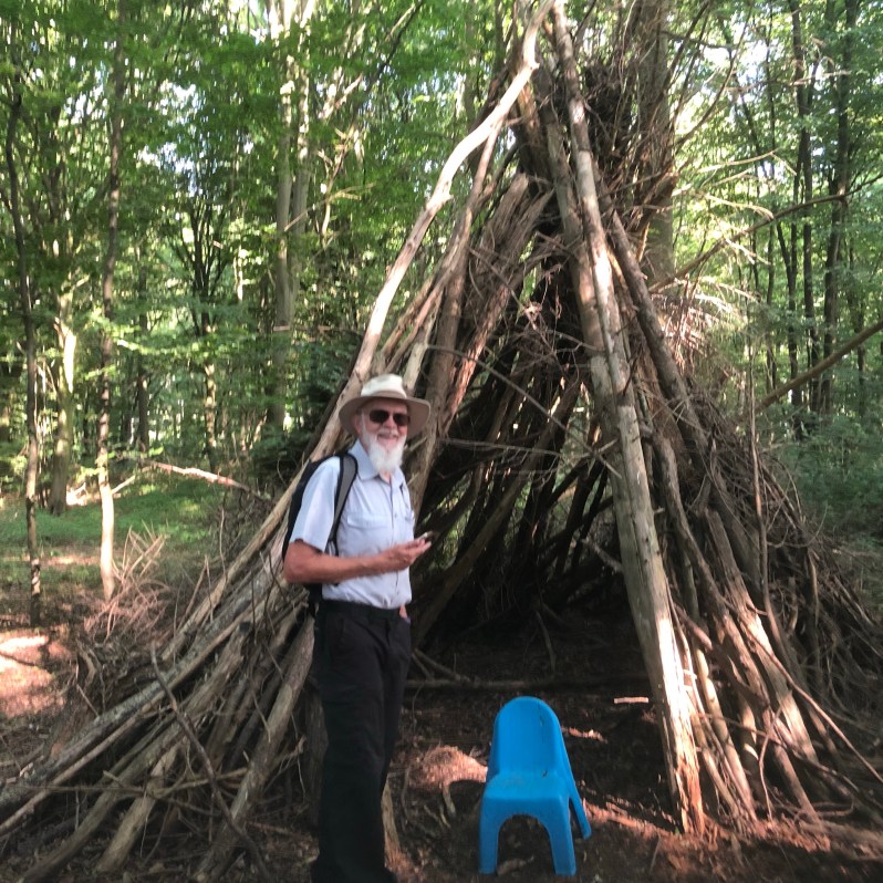 We headed into a cool and secluded wooded area where people had been constructing shelters made from fallen branches.