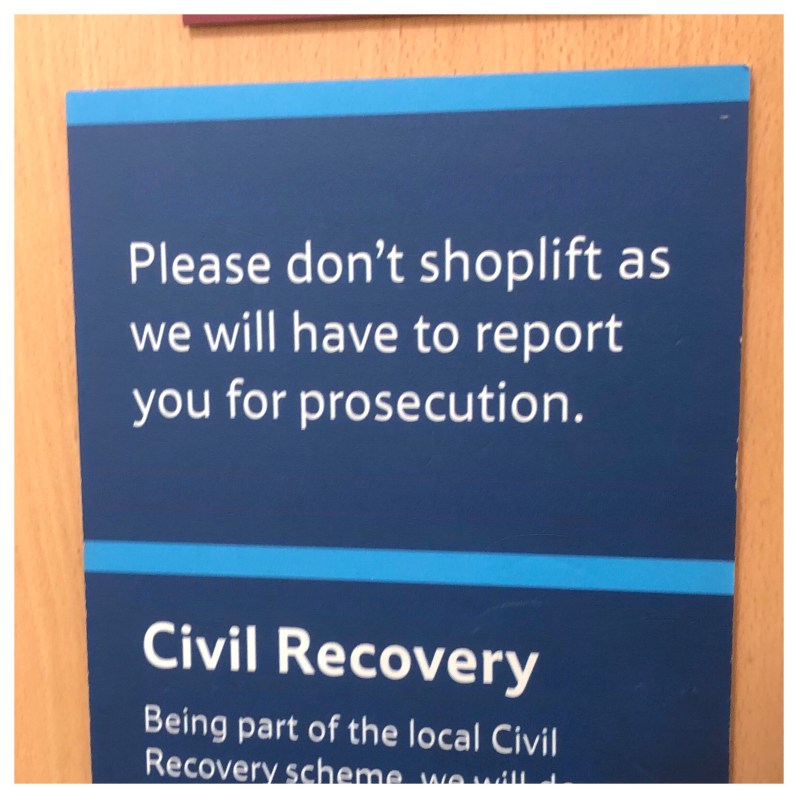 After finding a few more we popped into a local Tesco’s for a ‘comfort break’ where we saw the most polite sign aimed at shop lifters!