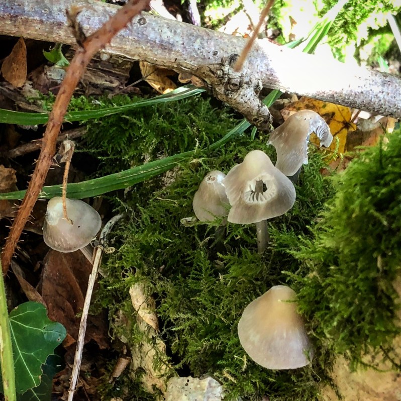 Here, in the undergrowth, whilst searching for a cache, we spotted these cute fungi,