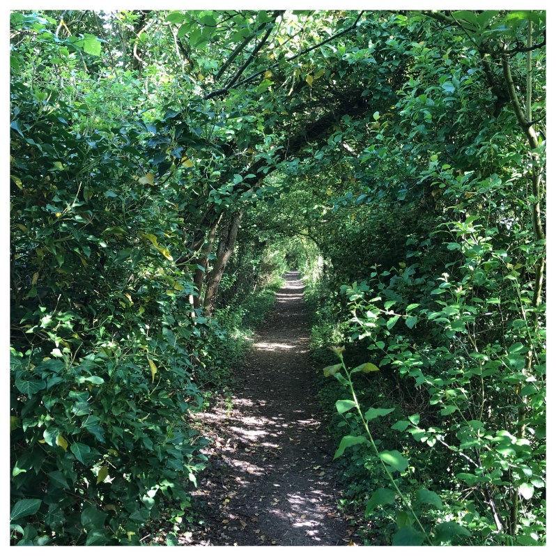 After walking past fields of peas, and another unidentified crop, we headed down a hollow way.