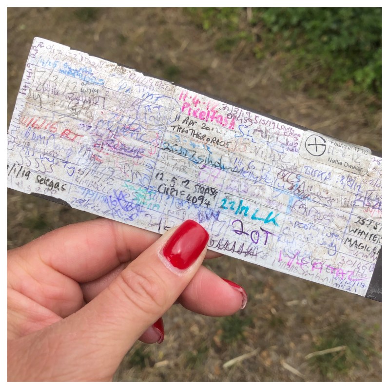 Next we found a couple of novelty caches. – this one had a very full log.