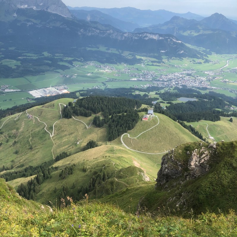 Today’s caching adventure was a little more extreme. After a short bus ride to Kitzbühel we rode the cable car up to the first station then had to wait for the second car to fill up. Once it was full, we ascended to the top of the Kitzbüeheler Horn, a full 1,996 meters!