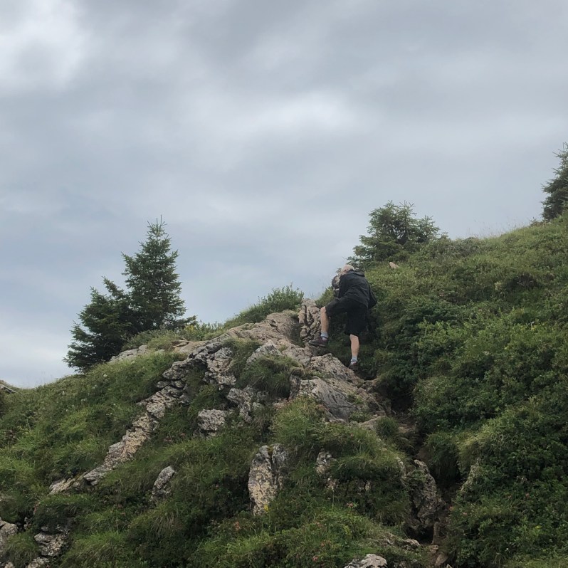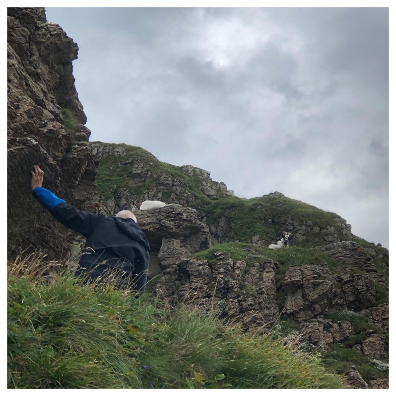 The photo below shows ‘The Man’ being watched by a sure-footed mountain goat, who wondered why we were making such a meal of getting to this one.