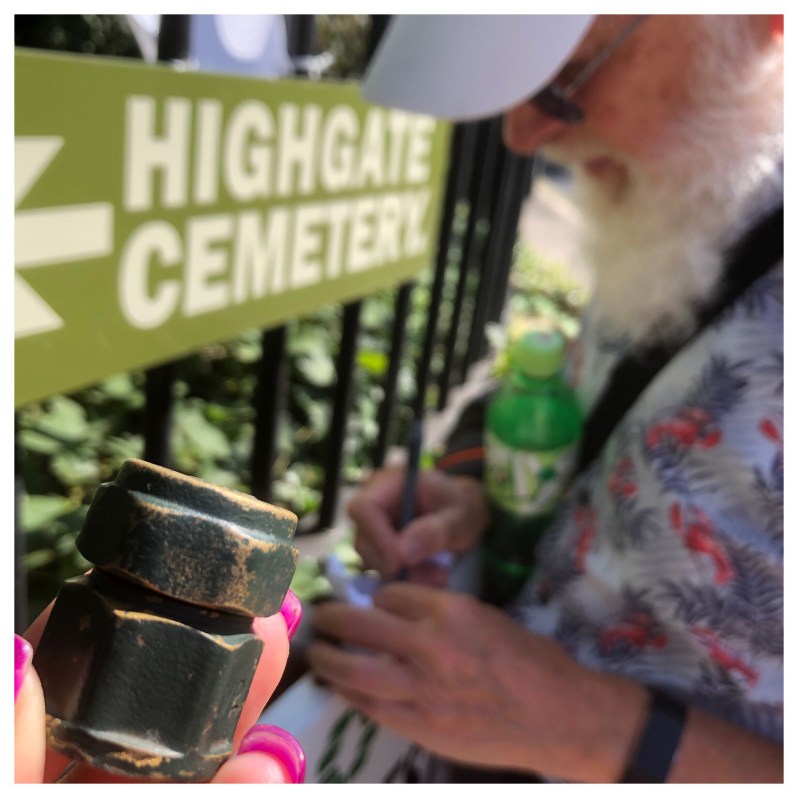 After walking a bit further we found another cache, attached to the Highgate Cemetery signage.