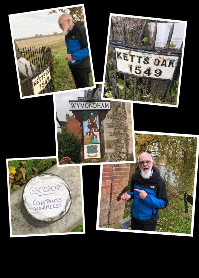 Lastly we completed a puzzle cache based on Ketts Oak – it truly is amazing the things you find and learn about it whilst caching. This was where two men (William and Robert Kett) gathered some of their men men and marched to the town to complain about the enclosure of their land in 1549. They were both hanged unfortunately but the tree and their story remain.