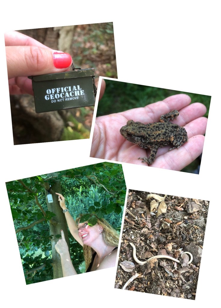 We found most of these lower numbered West Harling caches and we spotted a cute baby slow worm under a piece of camouflage and a beautiful toad.